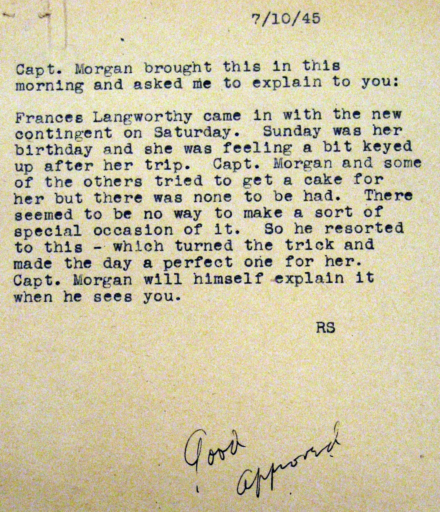 Jackson returned to London on Wednesday, July 11. In his office “In Box,” he found a note, typed by his secretary. It was paper-clipped to a carbon copy of “his” birthday note to Langworthy.