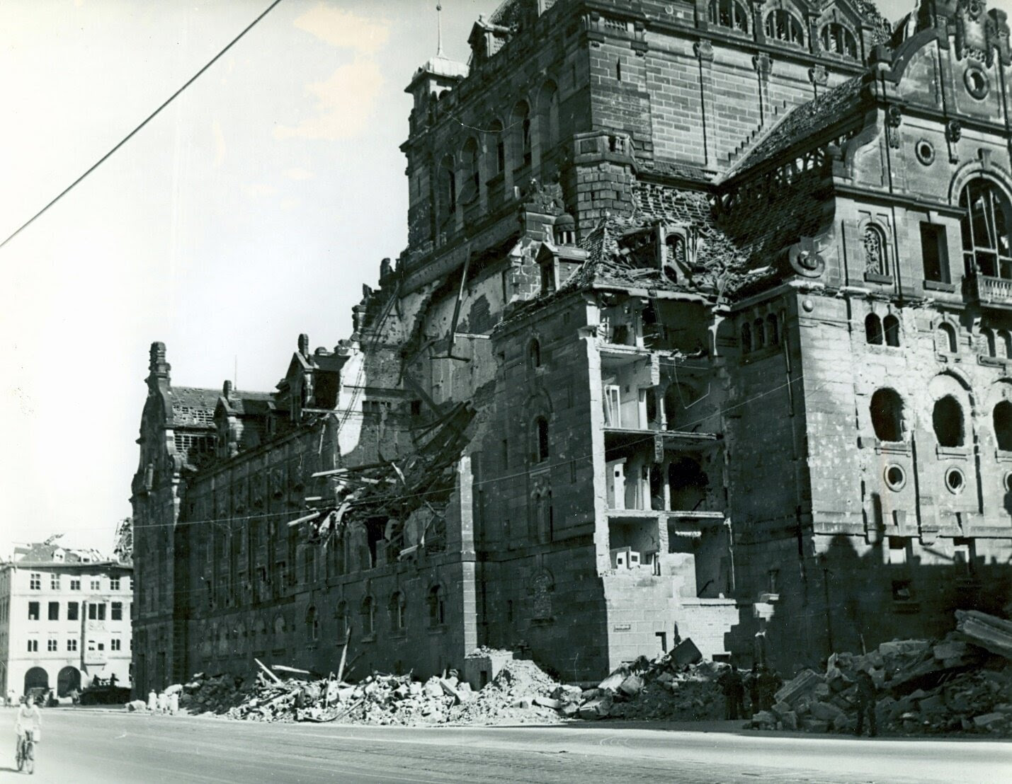 They also visited Nuremberg’s massive Opera House, located just outside the old city walls. Although the surrounding streets were filled with rubble and the building had suffered significant bomb damage, the main concert hall—large, ornate, with three balconies including “the Führer’s box”—was intact and functioning.